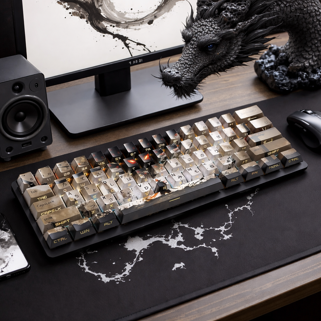 Material: Dye-sublimated PBT keycaps (long-lasting print)