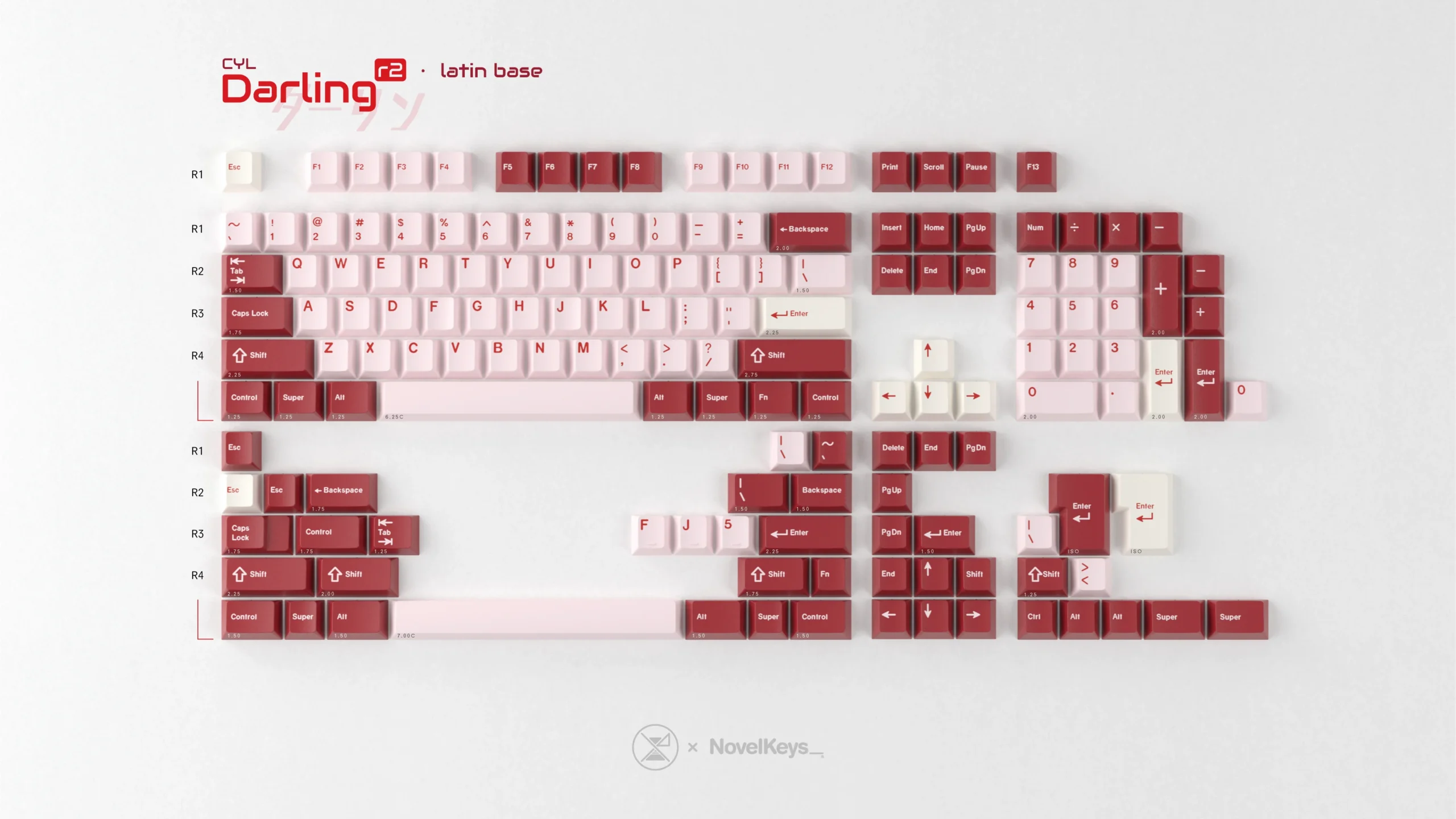 Runic/Japanese novelty keys and themed accents (including “ダーリン!” and cherry blossom symbols)