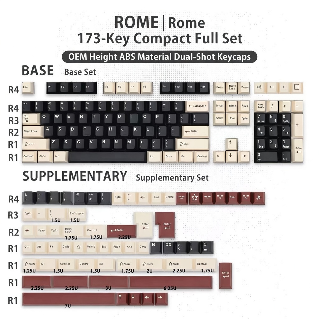 Maximum Layout Support: 173 keys total — base kit + full supplementary set for drop-in use on compact and standard boards.