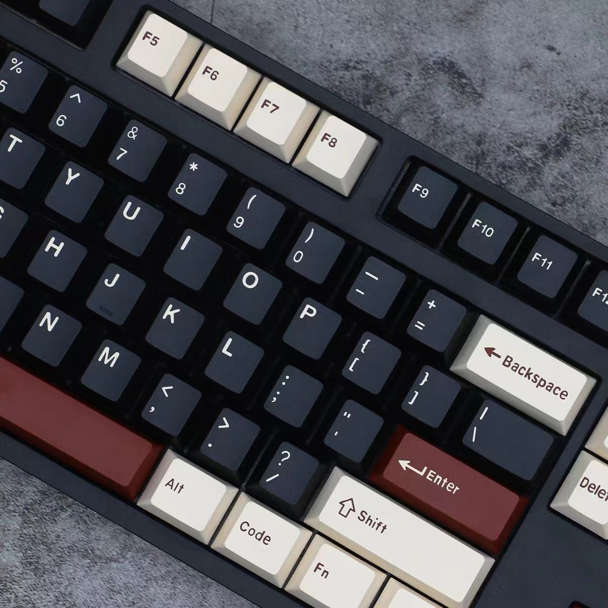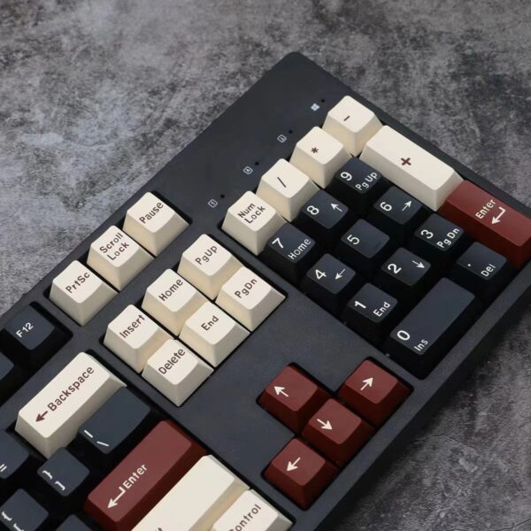 Striking Two-Tone Design: Black main keys + beige modifiers + maroon novelty/supplementary keys for a bold yet clean retro-modern look.